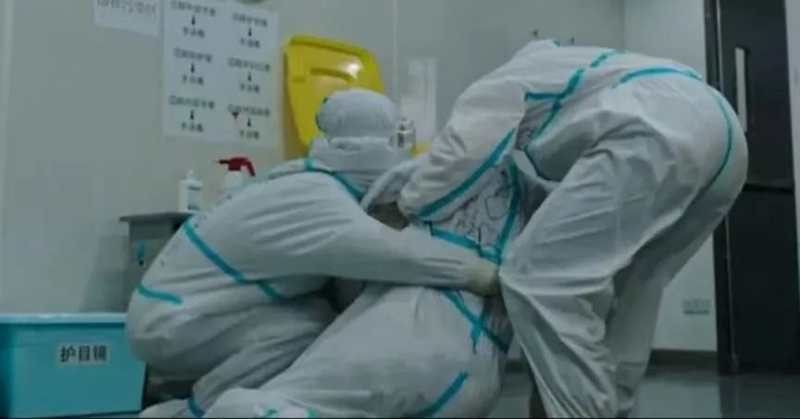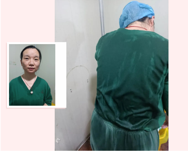 在车站出站口,忙碌的核酸采样点护士张玲玲和陈露突然发现身边的另一名护士吴红艳踉踉跄跄,几乎要一头栽倒在地,她们马上上前扶住她,并拨打了120急救电话。同事们赶忙给吴红艳脱下防护服,外层衣物脱下后,里层的隔离衣已经完全湿透,紧贴在身上,手掌也被汗水泡得起皱,脸色煞白,鬓角的头发贴着头皮还在滴水。