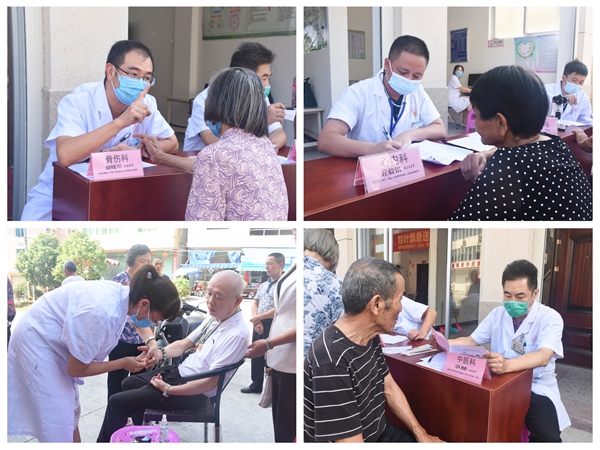 来自外科、心血管内科、神经内科、儿科、中医科、眼科、妇科等多个临床科室的十余名医务人员在湖坑村村部附近为村名提供体检、疾病咨询等义诊服务,并为群众免费测量血压、血糖,送上常用药品。