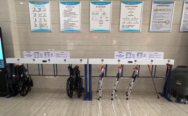 近日,新罗区残疾人联合会为方便群众就医,向我院免费提供3 组共享辅具,投放在3号楼住院部一楼大厅、骨科住院病区等关键点位,辅具有轮椅、四脚助行器及拐杖等。患者及家属可通过扫码支付押金免费租用,随借随还,最长可免费租借33天。辅具投入使用以来,有效缓解老年患者、术后康复患者、腿脚不便人群在院内移动困难的问题,减少家属陪护压力,让患者在就诊、检查、转科等环节更加安全顺畅。下一步,医院将持续做好共享辅具的管理,不断完善便民服务设施,用更贴心、更暖心的举措提升患者就医体验。