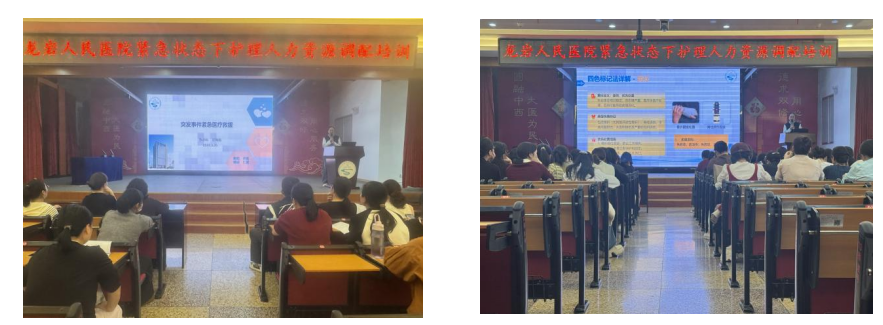 ▲组织紧急状态下护理人力资源调配演练方案的解读及相关知识的培训。
