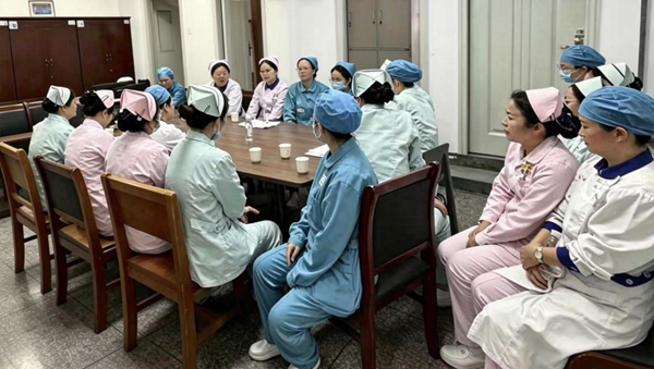 ▲演练前,护理部联合急诊科、医务科对演练时间、地点、演练内容等进行讨论,确定演练方案。